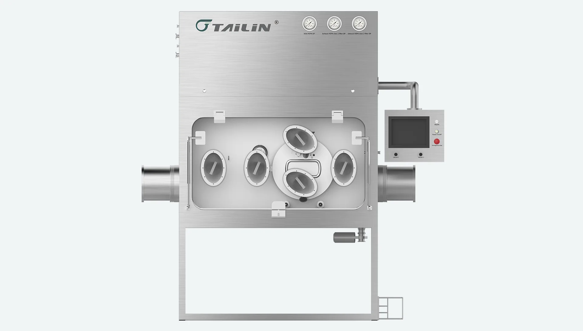 Tailin Containment Isolator is designed to protect operators during operations such as weighing, dispensing, drying, pressing, and filling of highly potent and toxic products. It is mainly applied in pharmaceuticals, cosmetics, bioproduct research, and physico-chemical laboratory studies. The system generates turbulent airflow through a high-pressure exhaust fan, maintaining negative pressure inside the working area. This design effectively prevents cross-contamination between internal and external environments, ensuring the safety of both personnel and the surrounding environment.