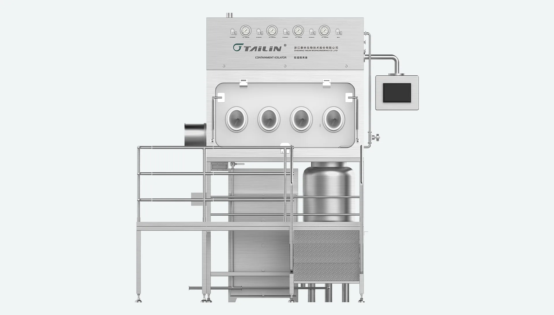 Tailin Containment Isolator is designed to protect operators during operations such as weighing, dispensing, drying, pressing, and filling of highly potent and toxic products. It is mainly applied in pharmaceuticals, cosmetics, bioproduct research, and physico-chemical laboratory studies. The system generates turbulent airflow through a high-pressure exhaust fan, maintaining negative pressure inside the working area. This design effectively prevents cross-contamination between internal and external environments, ensuring the safety of both personnel and the surrounding environment.